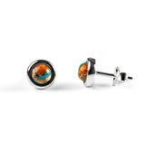 Small Round Stud Earrings in Silver and Copper Turquoise