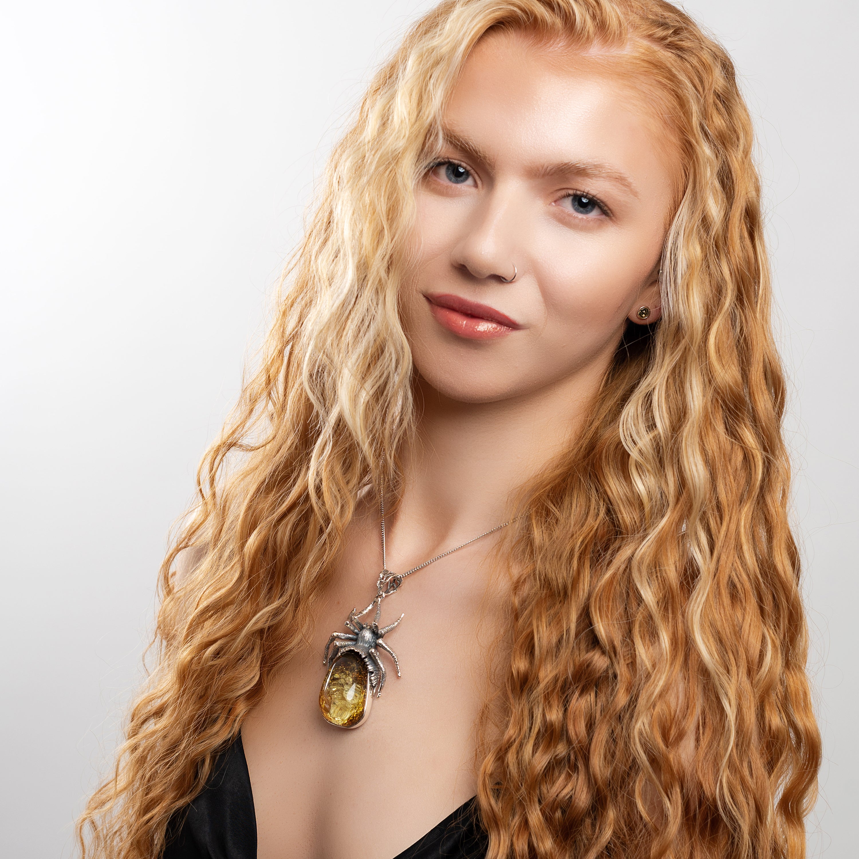 'Spine-Chilling' Handmade Spider Necklace in Silver and Baltic Amber