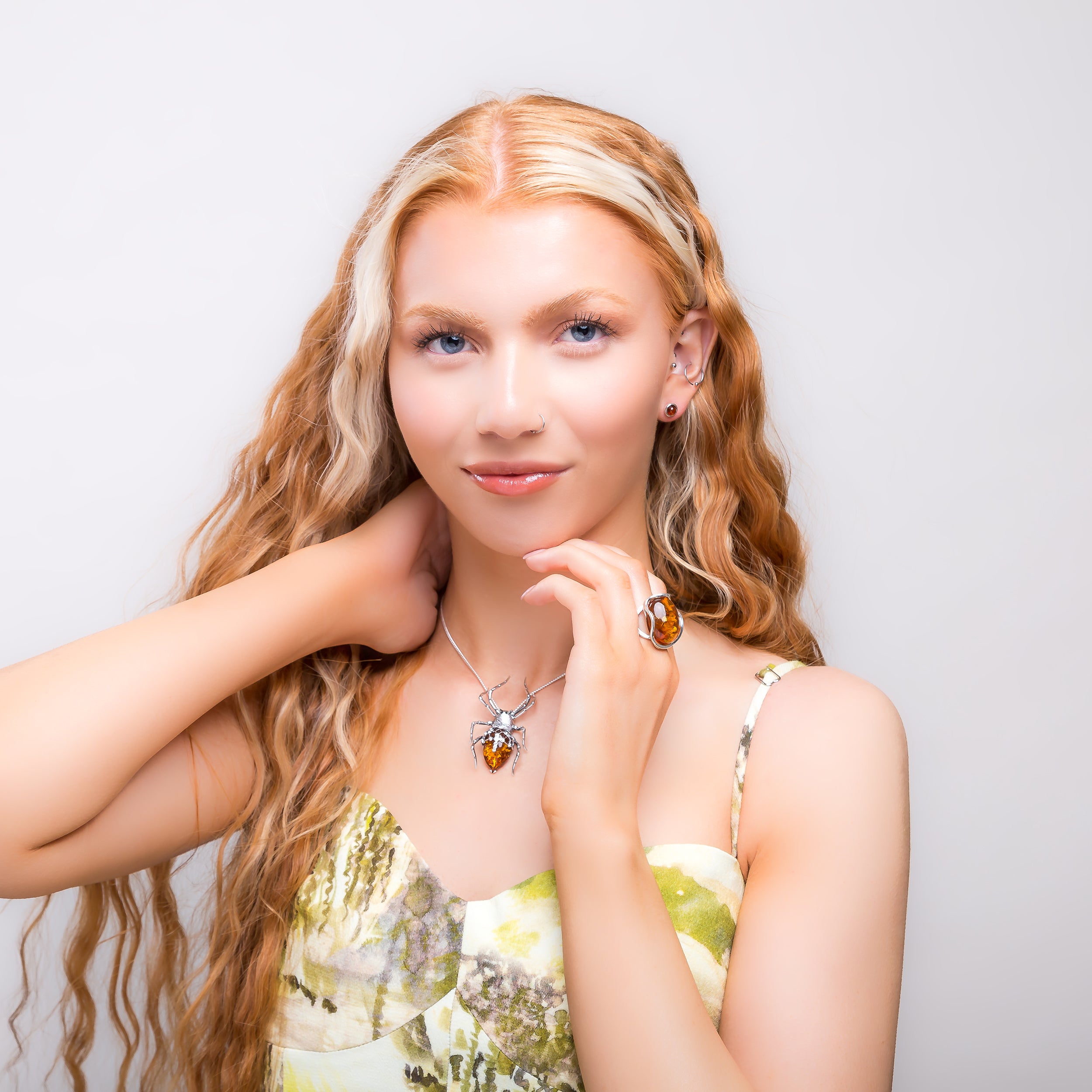 Feel spooky all year round with our Silver and Amber Spider Necklace.