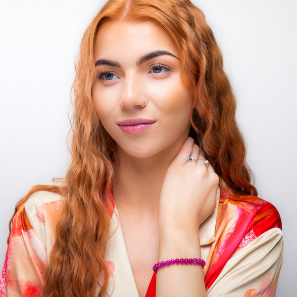 Made up of perfectly rounded natural Ruby Quartz gemstone beads on a strong nylon string, this bracelet can be worn solo or layer up with your favourite accessories.