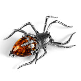 Spooky Spider Brooch in Silver and Cognac Amber