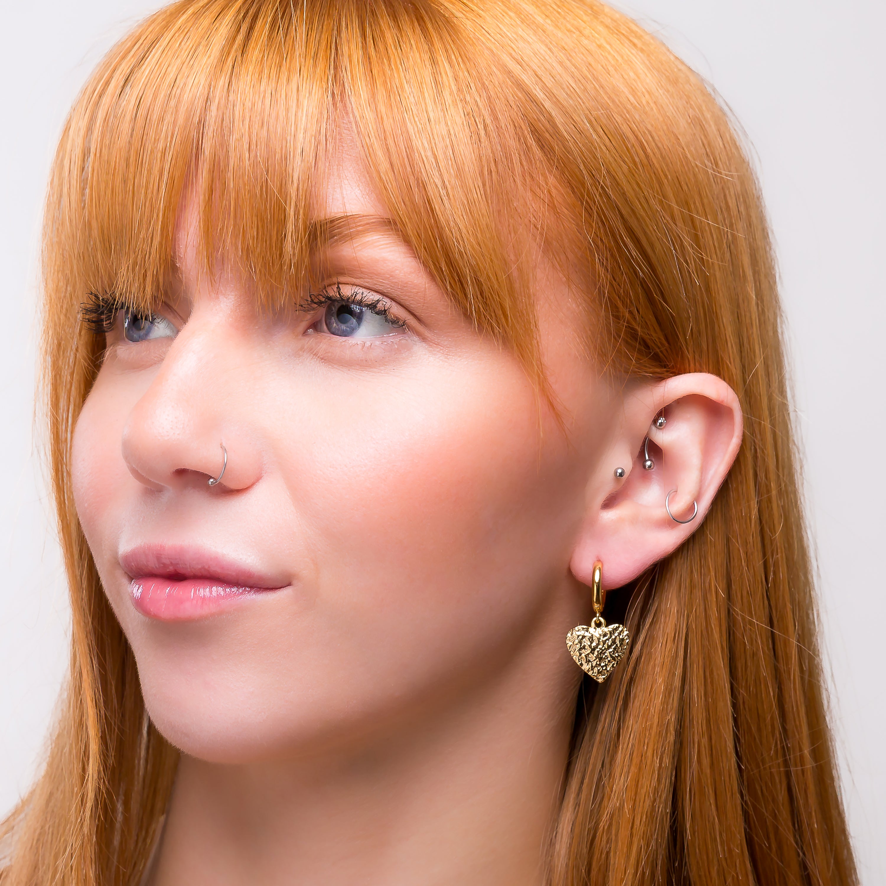 Their delicate heart-shaped design adds a romantic touch, while the textured finish brings depth and character to each piece. Lightweight and comfortable for all-day wear, these earrings effortlessly enhance both casual and dressy outfits.