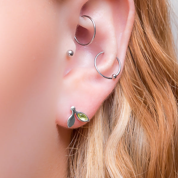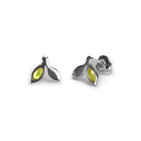 Tiny Leaf Stud Earrings in Silver & Peridot