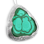 This Natural African Malachite from Zaire commands attention with its hypnotic green banding, shifting from light to dark with layers that feel alive. Framed in a handmade, solid silver setting, it’s a piece that doesn’t whisper - it roars.