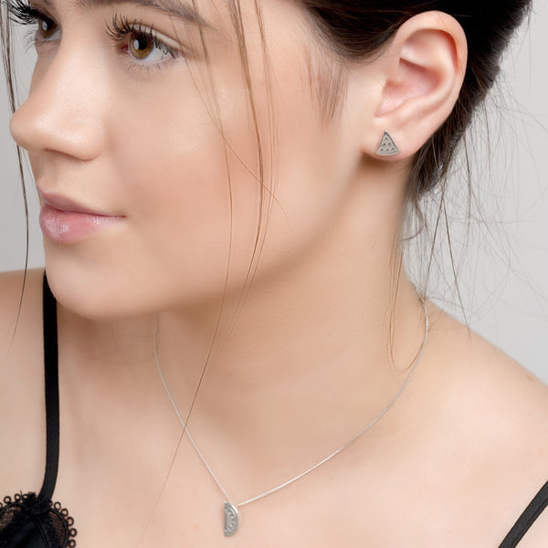 Handcrafted in 925 Sterling Silver, each earring is carefully shaped into a recognisable sliced watermelon fruit shape. With silver detailing to represent the seeds, they look almost good enough to eat! Finished with a silver stem post and butterfly back.