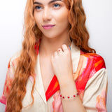 Carefully handcrafted in 925 silver and adorned with bright Coral stones spaced evenly across entwined silver wire. Finished with miniature silver beads between each of the stones. Complete with a bolt ring clasp for secure and easy fastening.